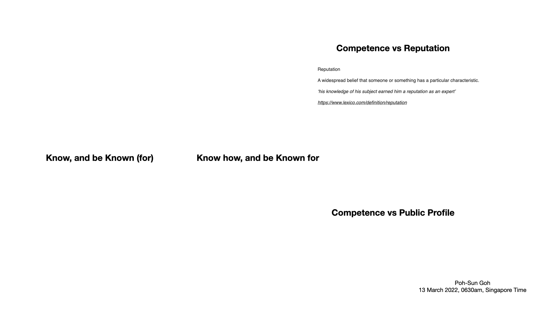 - 100 minute interactive class session on 'Micro-Scholarship' (by Poh-Sun) with students (in August 2022) - upcoming block - Micro-Scholarship or Micro-Practice simply described, Opening and Summary Slide, Know, and be Known (for), Micro-Scholarship - How to start? Going public? How does it add up? Benefits of open practice?, Illustrated stacked Micro-Scholarship steps along academic path of educational scholar, Matching ‘Technology’ (tools and platforms) and ‘Jobs to be done’, Please select (one of three topics from 'block book'), and undertake the Micro-Scholarship process - e.g. define topic - search for 'definition', cite online resource(s) - capture and document this, reflect on this, engage in conversation(s) within your team (your CoP or Community of Practice), search for review article, additional online resources; reflect further and engage in conversations of 'why' this topic is important and of interest to you, translate ideas (you have discovered, and generated through reflection and conversations) into early notes, concept maps, illustrations, multi-media content; continue to capture and document this, engage in discourse and share (disseminate) this; and whilst you are doing this, select a (few) technology tools and platforms (open access, and off the shelf - i.e. free to use) to help you do this - document, engage in discourse and disseminate, 'Worked Example' - of 'doing' Micro-Scholarship by block design team + 'Supporting Information' on 'how to do Micro-Scholarship' by block design team (for students), AJCUI MEC Block Design Team - Micro-Scholarship Instagram website; Successful practice (of Micro-Scholarship) is built on taking regular, cumulative, small, daily steps, Tom Brady on 'doing the work' in pursuit of excellence, focus, and life perspective (WSJ video interview), Shirley Horn - Here's To Life (Verve Records 1992) on YouTube - see also singer bio and lyrics of song - also available here, #Nature #Nurture #Twins #Inner #Outer #Environments #Performance, Learning as a 'download' internalised through use, Personal(ised) - Insight(s), growth and development, education, training, (health)care, Individual micro-scholarship becomes macro-scholarship through engagement with a community of practice (CoP), Individual Micro-Scholarship becomes Macro-Scholarship by engaging a CoP and applying established models of Scholarship, Individual Micro-Scholarship through engagement with a CoP and reflective iterative practice and engagement progresses to Macro-Scholarship catching Attention, Interest and adding Value, applying Ikigai and Iron Law of the Market, Building blocks of Scholarship in Medical Education, Categories of Scholarship in Medical Education, Micro-Scholarship Insight - make each step visible, to count and be counted, Translating Micro-Scholarship to Macro-Scholarship - Choice of Process and Platform, Examining Micro-Scholarship and the components of Macro-Scholarship - which platforms and processes best facilitate modular open digital practice, Sustainable and Scalable Innovation and Transformation Efforts, m(minimalist)-Learning, m-Instruction, m-Education, Scholarship (including Micro-Scholarship) and Assessment - both ‘as’ Learning, not just ‘of’ learning, Focus on each step, each ingredient in Micro-Scholarship, Using a blog as an integrated eLearning (and Micro-Scholarship) tool and platform, (The) Micro-Scholarship Funnel, Fundamental idea underpinning value creation as we undertake each small step, each component, of Micro-Scholarship, (Iterative) Meta-reflection is a key practice in Micro-Scholarship, meta-reflection (meta + reflection), word origin and history, Taking Note, Making (a) Note, allows (An)notation, to (eventually) make this Noteworthy, and Noticed, Participating in Professional Development activities as starting point (to engage in Micro-Scholarship), or Preparing for topic presentation, to participate in a topic discussion, at a meeting (local or international), or conference can be (and often is), the starting point for Micro-Scholarship (the first step), Public Performance and engagement with Peers, on Platforms Polishes and Progressively Perfects Practice(s), or Micro-Scholarship as both the 'means to an end' and 'the end itself', similar to Scholarship - both the process and outcome are important, both 'becoming' and 'being', or Cumulative, and Sustained effort, taking regular small steps - #Micro-Learning, #Micro-Teaching and #Micro-Scholarship, all add up, Emerson quote on taking cumulative steps, and Gates' Law on impact of sustained multi-year effort, 'Organic' (Micro-) Scholarship, Professional Practice, Growth and Development - Time, Timing and Tipping Points, From #Micro-learning, #Micro-lessons, #Micro-teaching to #Micro-Scholarship, From Reusable Learning Objects to Micro-Scholarship, One 'simple' method to aggregate Micro-Scholarship to produce a customised larger work (of Macro-Scholarship), #Micro-Scholarship #Inspiration-of #Genesis-of, Micro-scholarship and Digital Scholarship, #BuildingBlocksOfScholarship in #MedicalEducation, #Categories of Scholarship in Medical Education #Scholarship in MedEd #Micro-Scholarship, From eLearning, Technology enhanced Learning or #DigitalLearning through #DigitalPractice to #DigitalScholarship - a continuum of personal and professional development and growth - best taken in regular, progressive, cumulative small steps - from #MicroLearning, through #MicroPractice to #MicroScholarship, or See (one), Do (one), Practice (with reflection and feedback) - Demonstrate - Showcase, Teach and Train Others, Guide, Mentor, Sponsor and Coach, and engage in Scholarship in an iterative, cyclical, cumulative, progressive, personal and professional growth and developmental journey, or Selected publications - illustrating continuum of #DigitalLearning, #DigitalPractice and #DigitalScholarship - documenting, disseminating and engaging in discourse whilst engaging in faculty development, Mi